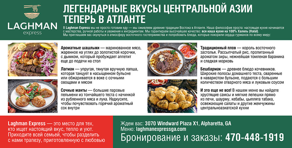 Laghman Express — легендарные вкусы Центральной Азии теперь в Атланте В Laghman Express мы не просто готовим еду — мы оживляем древние традиции Востока в Атланте. Наша философия проста: настоящая кухня начинается с мастерства, ручной работы и уважения к ингредиентам. Мы гарантируем высочайшее качество: вся наша кухня на 100% Халяль (Halal) Мы приглашаем вас окунуться в атмосферу восточного гостеприимства и попробовать блюда, которые покорили сердца гурманов по всему миру: Лагман— упругая, тянутая вручную лапша, которая танцует в насыщенном бульоне или обжаривается в воке с сочными овощами и мясом И это ещё не всё! В нашем меню вы найдёте хрустящие самсы и мягкие лепёшки прямо из печи, шаурму, кебабы, цыплята табака, освежающие салаты и другие жемчужины центральноазиатской кухни Laghman Express — это место для тех, кто ищет настоящий вкус, тепло и уют. Приходите всей семьей, чтобы разделить с нами трапезу, приготовленную с любовью Ждем вас: 3070 Windward Plaza X1, Alpharetta, GA |